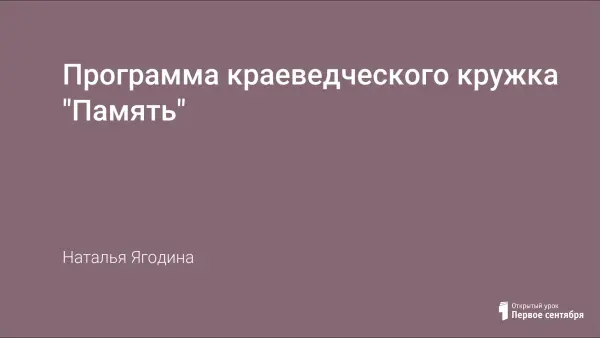 В статье представлена модифицированная программа кружка «Память» туристско-краеведческой направленности, разработанная на основе авторской программы «Мой край в истории страны» Е.В. Киселевой. Основные направления в деятельности кружка – изучение истории родного края и села, оформление и пополнение экспозиций школьного историко-краеведческого музея.
