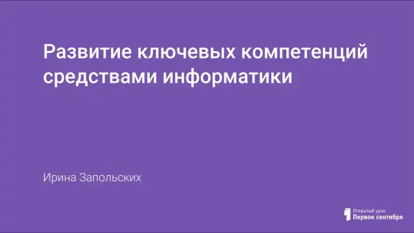 Информатика как учебный предмет имеет определенную базу, позволяющую работать над навыками деятельности по отношению к информации в разных сферах жизни. Именно поэтому занятиям информатикой отводится чаще всего роль для развития информационной компетенции. Но верно ли это? Используя типологию ключевых компетенций, предложенную А.В. Хуторским, рассмотрим, каким образом можно строить учебный процесс так, чтобы каждая группа компетенций заняла свое место на занятиях информатикой.