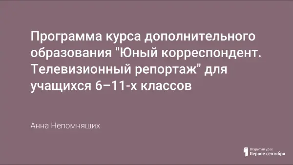 При студии работает кружок «Юный корреспондент». Разработана программа кружка Непомнящих А.М. (программа прилагается). Эта программа утверждена городским управлением образования.