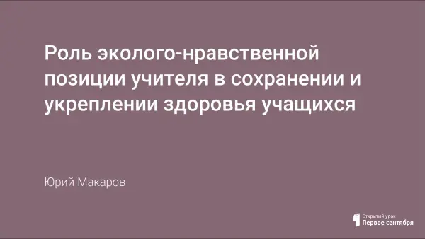 В работе рассмотрены основные направления эколого-нравственной работы учителя над собой и учащимися. Дана базовая модель системной комплексной работы по сохранению и укреплению здоровья. Приведено планирование научно-практической конференции для учителей и учащихся.
