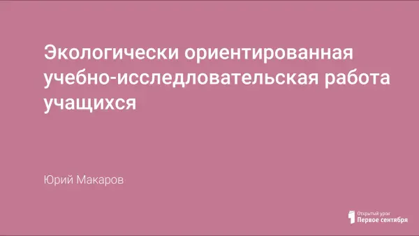 В работе представлена экологически ориентированная учебно-исследовательская работа учащихся на уроках, факультативных занятиях, экологических практикумах, беседах, работе на учебно-опытном участке, в экскурсиях, походах, школе молодого эколога, на экологических слетах, конкурсах и олимпиадах по экологии, учебной тропе природы, экологического дня, Клуба любителей природы, международных экологических акциях. В приложении представлены тематика факультативных курсов "Здоровый образ жизни человека в условиях загрязнения биосферы", "Природопользование", бесед на экологические темы с 1-го по 11-й классы.