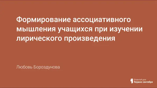 В данной работе рассмотрены общие особенности вызываемых лирическими образами ассоциаций в произведениях разных авторов и разных художественных направлений. На примере одного урока показано, как педагог может от возникших при первом чтении субъективных ассоциаций через целостный анализ текста привести детей к наиболее глубокому пониманию произведения.