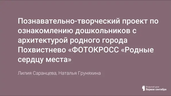 Познавательно-творческий проект по ознакомлению дошкольников с архитектурой родного города Похвистнево «ФОТОКРОСС «Родные сердцу места»
