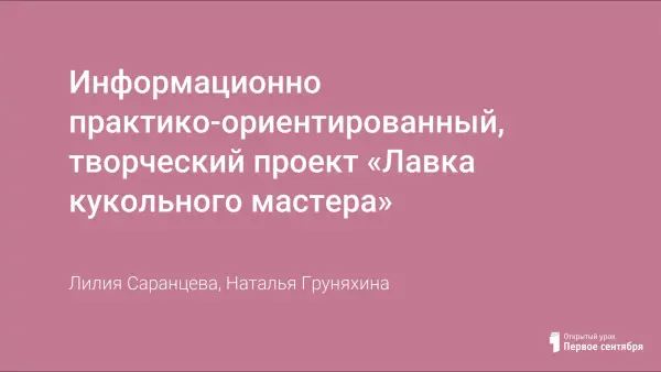 Информационно практико-ориентированный, творческий проект «Лавка кукольного мастера»