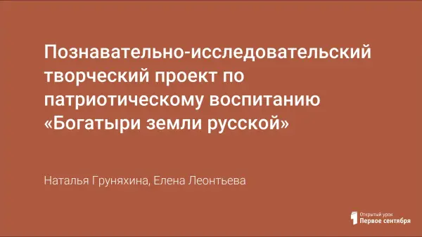 Познавательно-исследовательский творческий проект по патриотическому воспитанию «Богатыри земли русской»