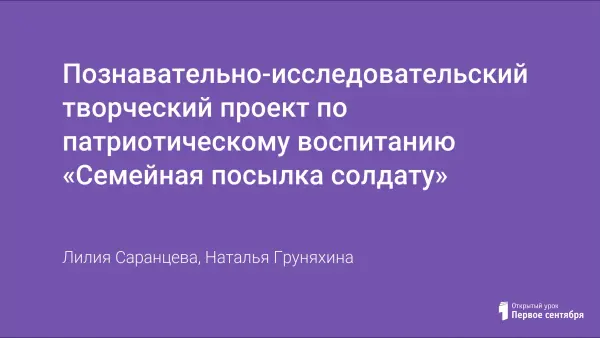 Познавательно-исследовательский творческий проект по патриотическому воспитанию «Семейная посылка солдату»