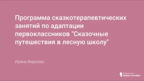 Проблема школьной дезадаптации может быть решена с помощью сказкотерапевтических занятий. Сказкотерапия - один из наименее травмоопасных и безболезненных способов развивающей и коррекционной работы с младшими школьниками. Исходя из этого, автором была разработана профилактическая программа работы с первоклассниками в период их адаптации к школе с использованием коррекционных сказок М.Панфиловой.