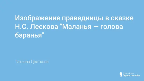 В центре сказки Н.С. Лескова "Маланья - голова баранья" - русский национальный характер, праведница, живущая по христианским заповедям. Она каждый день совершает труднейший подвиг доброго участия и помощи ближнему. Раскрывая богатство внутреннего мира героини, десятиклассники легко постигают и позицию автора, считавшего, что "христианство есть учение жизненное, а не отвлеченное". Содержание этого небольшого произведения серьезно и глубоко: писатель заставляет думать и рассуждать о вечных общечеловеческих нравственных законах бытия.