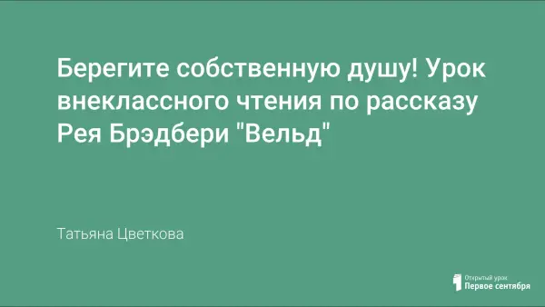 Cтруктура урока по рассказу Рея Брэдбери "Вельд" подчинена воспитанию толерантности, осуждению любой формы жестокости и насилия. Продуманная работа с текстом произведения учит детей добру, милосердию и умению критически осмысливать свои поступки.