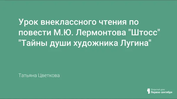 Неоконченную повесть М.Ю. Лермонтова «Штосс» можно использовать на уроках внеклассного чтения до или после изучения романа «Герой нашего времени». Учащиеся говорят об одиночестве художника Лугина, не сумевшего реализовать свои творческие возможности, не нашедшего ни любви, ни счастья. Причины душевной пустоты героя повести оказываются понятны и близки подросткам ХХI века.