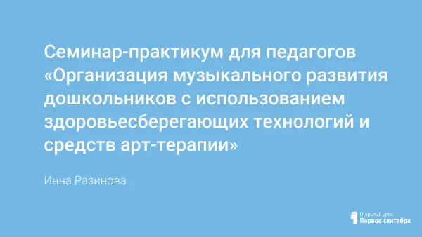 Семинар-практикум представляет собой теоретический и практический материал по работе с педагогами по организации музыкального развития дошкольников. Цель семинара-практикума: знакомство педагогов с одним из нетрадиционных способов сохранения и укрепления физического и психологического здоровья – музыкотерапией, а также систематизация представлений в области музыкотерапии - о конкретных способах использования музыкотерапии в своей работе и применении их на практике.