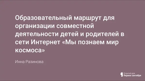 Образовательный маршрут предназначен для родителей и детей с целью знакомства с историей освоения космоса, с тем, что Самара является космической столицей, какие еще планеты есть в солнечной системе, возможна ли жизнь на них, на чем можно долететь к этим планетам, почему так ярко светят звезды и многое другое.