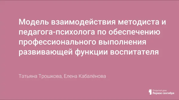 Модель взаимодействия методиста и педагога-психолога по обеспечению профессионального выполнения развивающей функции воспитателя