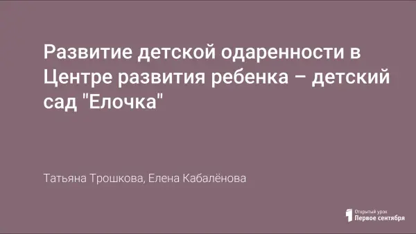Развитие детской одаренности в Центре развития ребенка – детский сад "Елочка"