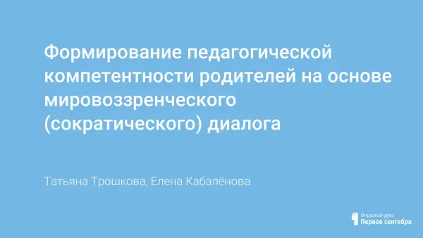 Формирование педагогической компетентности родителей на основе мировоззренческого (сократического) диалога