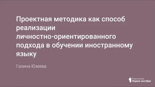 Процесс обучения иностранному языку имеет личностно-ориентированную направленность. Ученик становится активным участником собственной учебной деятельности. Этому способствует реализация проектной методики.