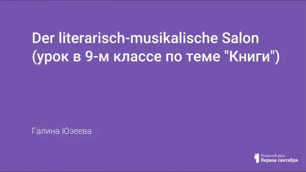 Урок - встреча в литературном салоне может быть использована как на уроках в старших классах, так и во внеклассной работе. При подготовке были учтены личностные качества учеников: одни читали стихи на немецком языке, другие - на русском языке, третьи анализировали. Ребята, которые занимаются в музыкальной школе, исполняли произведения Моцарта, Шуберта. А гостями салона были учитель литературы и одноклассники, изучающие другой язык.