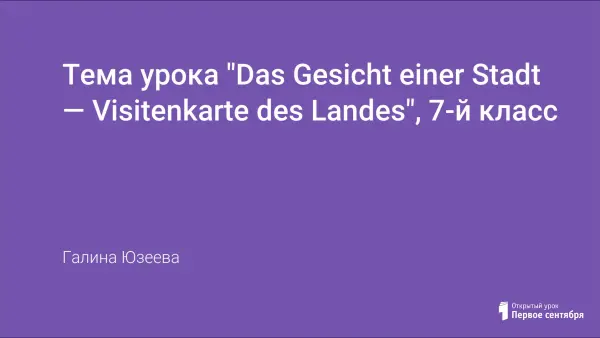 Внеклассная работа создаёт благоприятные условия для использования иностранного языка как средства общения, а также способствует появлению новых интересов у учащихся. Увлекает ребят обычно то, что раскрывает новые стороны в уже известном, поэтому знакомый учащимся материал по теме "Das Gesicht einer Stadt - Visitenkarte des Landes" в 7-м классе представлен в интересной форме — игре.