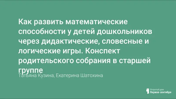 Как развить математические способности у детей дошкольников через дидактические, словесные и логические игры. Конспект родительского собрания в старшей группе
