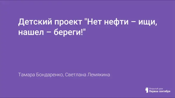 Детский проект "Нет нефти – ищи, нашел – береги!"