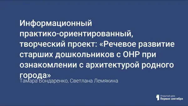 Информационный практико-ориентированный, творческий проект: «Речевое развитие старших дошкольников с ОНР при ознакомлении с архитектурой родного города»