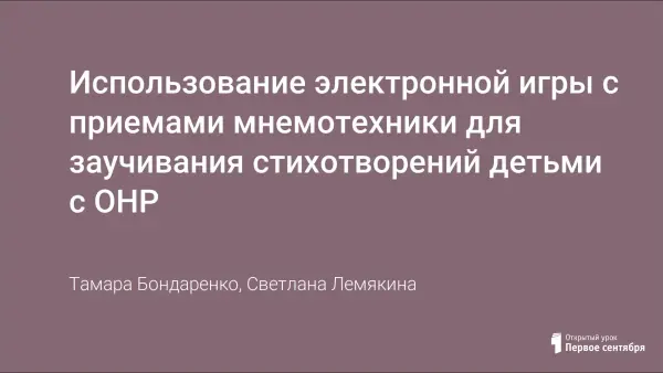 Использование электронной игры с приемами мнемотехники для заучивания стихотворений детьми с ОНР