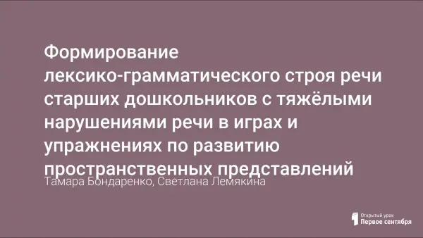 Формирование лексико-грамматического строя речи старших дошкольников с тяжёлыми нарушениями речи в играх и упражнениях по развитию пространственных представлений