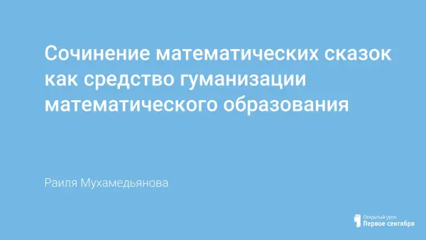 Гуманизация - ключевой момент нового педагогического мышления. Гуманизация предполагает задачу - способствовать всеми возможными способами развитию ребенка. Для возбуждения интереса к математике, для развития творческого мышления необходимо сочинение школьниками математических сказок. Создание математических сказок предполагает не только умение фантазировать на математические темы, но и умение владеть грамотной русской речью, а так же уверенное владение математическими понятиями.
