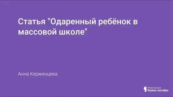 Современная практика работы с одаренными детьми весьма разнообразна. В этом разнообразии особенно ясно выступают нерешенные или слабо изученные проблемы. Одной из таких важнейших проблем является поддержка и развитие детей с общей (умственной) одаренностью в условиях обучения в средней общеобразовательной школе.