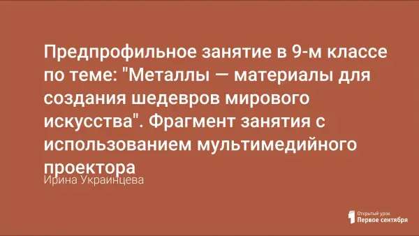 Разработка занятия в рамках предпрофильной подготовки учащихся при изучении элективного курса «Химия и искусство». Данный курс рассчитан на учащихся, выбирающих в дальнейшем гуманитарные профили, и не требует специальной подготовки по предмету. При изучении данного курса можно использовать активные формы обучения: лекции, семинары, викторины, беседы, дискуссии, и др.