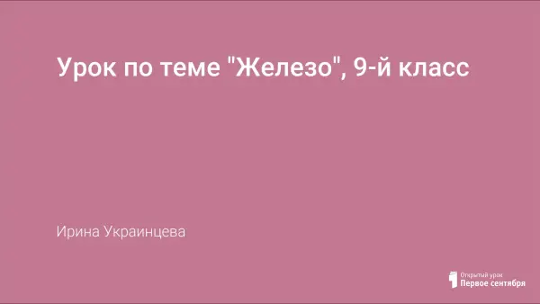 В работе представлена методическая разработка урока по теме "Железо" в 9-м классе, по программе О.С. Габриеляна. Представлена разработка урока и презентация. Особенно интересен он может быть молодым учителям.