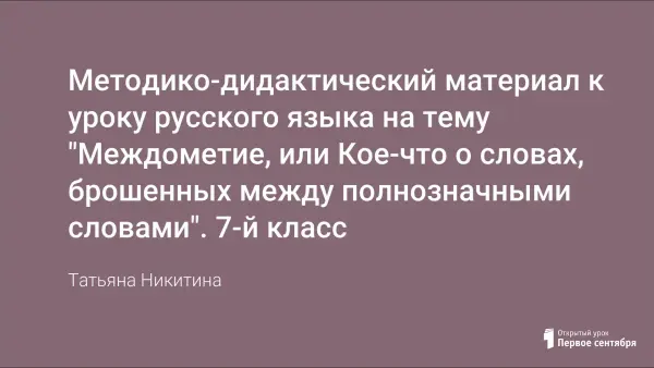 Цели урока: создать условия для изучения части речи, называемой междометием.