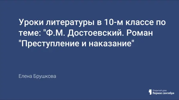 Предлагаю Вашему вниманию свой взгляд на преподавание литературы в классе в форме серии уроков по теме: "Ф.М.Достоевский. Роман "Преступление и наказание".