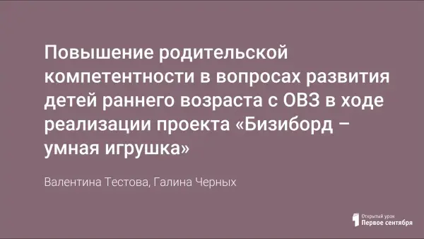Повышение родительской компетентности в вопросах развития детей раннего возраста с ОВЗ в ходе реализации проекта «Бизиборд – умная игрушка»