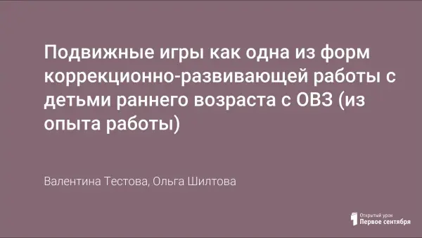 Подвижные игры как одна из форм коррекционно-развивающей работы с детьми раннего возраста с ОВЗ (из опыта работы)