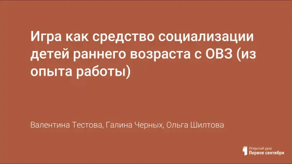 Игра как средство социализации детей раннего возраста с ОВЗ (из опыта работы)