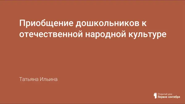 Особую значимость на современном этапе развития общества приобретает решение проблемы культурно-художественной социализации и духовно-нравственного развития ребенка. Ведущим средством является народная культура. Приобщение к отечественной народной культуре - приоритетное направление в работе дошкольного образовательного учреждения. Предлагаем варианты занятий с дошкольниками по данной проблеме.