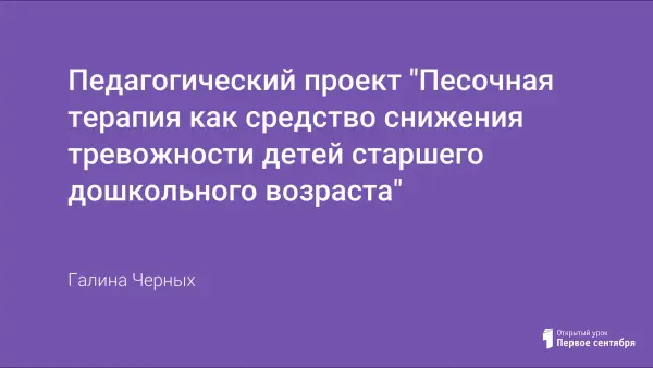 Песочная терапия − один из пихотерапевтических, психокоррекционных, развивающих методов, разрешающих личностные проблемы, а именно: снижение тревожности у детей старшего дошкольного возраста в творчестве и игре. В проекте отражены методы снижения тревожности игровым материалом; повышение компетентности родителей различными играми с песком.