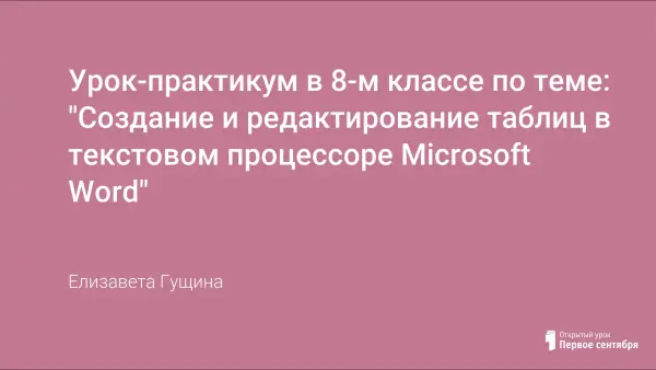 Целью урока является обучение приемам систематизации данных и организации их в таблицу, отработка практических навыков создания и редактирования таблиц. В течение урока учащиеся практикуются в построении таблиц, повторяют назначение текстового процессора. На уроке используется межпредметная связь. Урок содержит элементы профориентации.