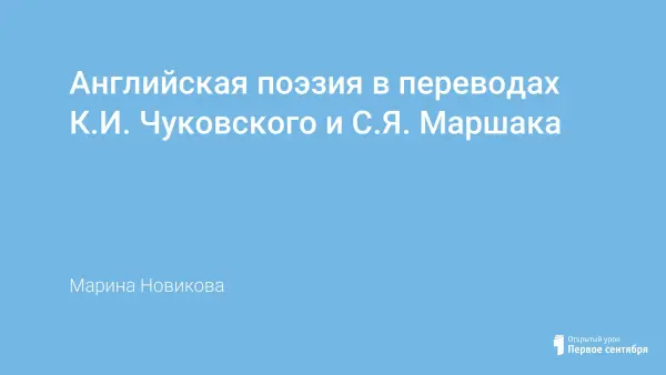 Разработка приурочена к 130-летнему юбилею К.И. Чуковского и 125-летнему юбилею С.Я. Маршака. Цель тематического занятия – познакомить учеников с английской народной поэзией Mother Goose Rhymes и творчеством К.И. Чуковского и С.Я. Маршака. Работа включает разучивание стихов и песен на русском и английском языках, изучение творчества К.И. Чуковского и С.Я. Маршака как переводчиков, сопоставительный анализ переводов старинных английских стихов на русский язык.