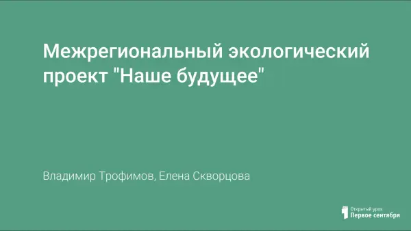 Межрегиональный экологический проект "наше будущее" позволяет через различные виды деятельности развивать в детях активную жизненную позицию, ответственное отношение к делу, поступкам, общественно-значимым решениям.