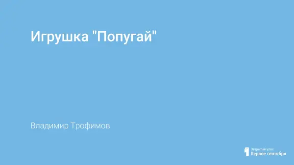 Эта симпатичная и яркая игрушка, внешне очень похожая на настоящего попугая, всего лишь маятник оригинальной конструкции. Она может служить украшением детской комнаты, а если ее подвесить в саду к ветке дерева среди листвы, то при малейшем дуновении ветра она начнет взмахивать крыльям, создавая почти полную иллюзию полета. Выполнить эту работу смогут ученики 6–7-х классов.
