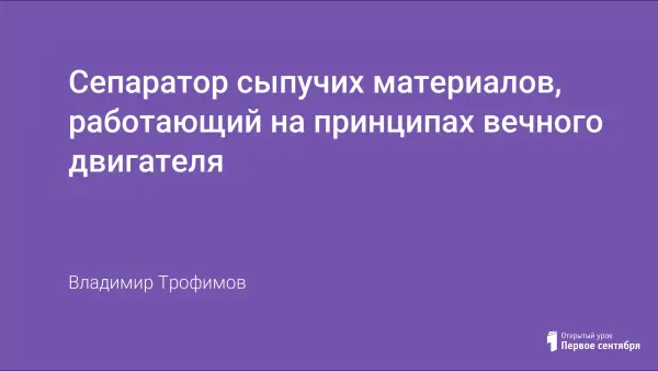 В работе представлен сепаратор сыпучих материалов, изготовленный в школьной матстерской, работающий на принципах вечного двигателя: может выполнять свою работу сколь угодно долго, используя лишь энергию, накопленную материалом, с которым идёт работа.