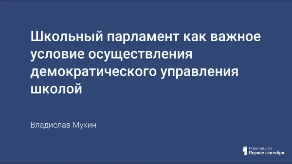В современных условиях функционирования образовательного учреждения возникает масса вопросов, связанных с обеспечением условий для демократического управления школой, когда не только директор и педагогический совет, но и ученики и родители могут влиять на качество предоставляемых школой услуг, участвуя в работе школьного парламента. Автор статьи рассказывает об этапах работы по его созданию, публикует структуру парламента.