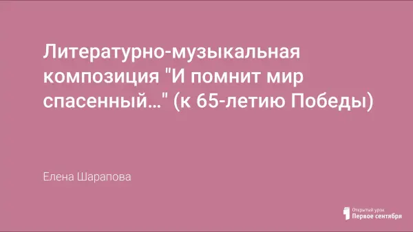 Сценарий литературно-музыкальной композиции может быть использован в 1–2-м классах на классных часах, посвященных Дню Победы или при проведении внеклассных мероприятий. Дети рассказывают стихи и поют по одному-два куплета песен военных лет.