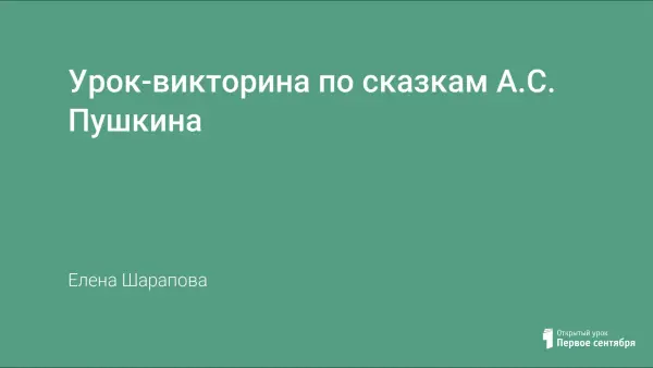 Представлена разработка урока-викторины по сказкам А.С. Пушкина (конспект и презентация), которая может быть использована как на уроках литературного чтения при изучении творчества А.С. Пушкина, на уроке внеклассного чтения, так и во внеклассной работе в 3–4-м классе по мере знакомства со сказками Пушкина.