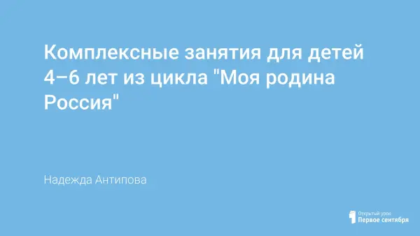 Цикл комплексных развивающих занятий «Моя родина – Россия» знакомит детей 4–6 лет с такими основополагающими понятиями, как "родина", "символика государства" (гимн, герб, флаг), "столица".