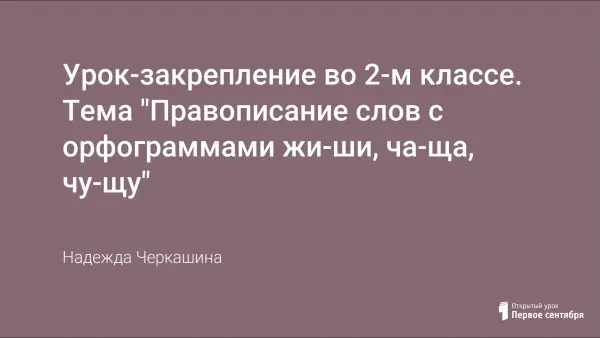 Урок-закрепление, на котором отрабатываются навыки правописания слов с орфограммами жи-ши, ча-ща, чу-щу, закрепляются понятия "орфограмма". Идёт работа по расширению словарного запаса учащихся, над воспитанием дисциплинированности; развитие интереса к учёбе.