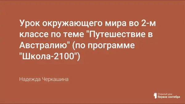 Данный урок окружающего мира включен в раздел «Части света», в нем учтены возрастные и индивидуальные особенности учащихся. Необходимый материал подобран в соответствии с возрастными особенностями учащихся. В уроке много интересного и познавательного. При подготовке к уроку можно задействовать учащихся: они сами находят информацию о животных Австралии, пользуясь научной литературой (энциклопедиями).