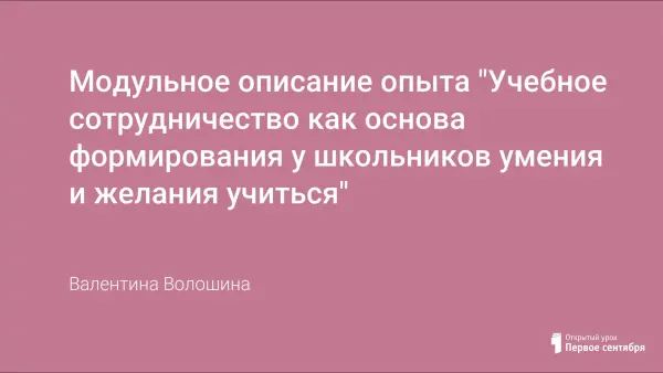Идея учебного сотрудничества ориентирует обучающихся на успех, что даёт возможность изучать учебный материал в системе, определять форму ученического самоконтроля и самооценки, ориентирует их на самореализацию в познании, учебную деятельность.